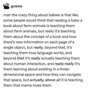 (https://gowns.tumblr.com/post/163767278278/man-the-crazy-thing-about-babies-is-that-like)